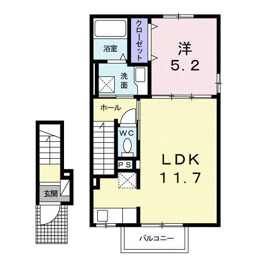 洋室 5.2帖/LDK 11.7帖 - 向き
